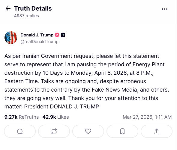 Trump took to his Truth Social platform to confirm the extension, writing that “Talks are ongoing and, despite erroneous statements to the contrary by the Fake News Media and others, they are going very well.” He added that the pause on energy plant destruction had been granted at Iran’s request, giving the US additional time before potential strikes.