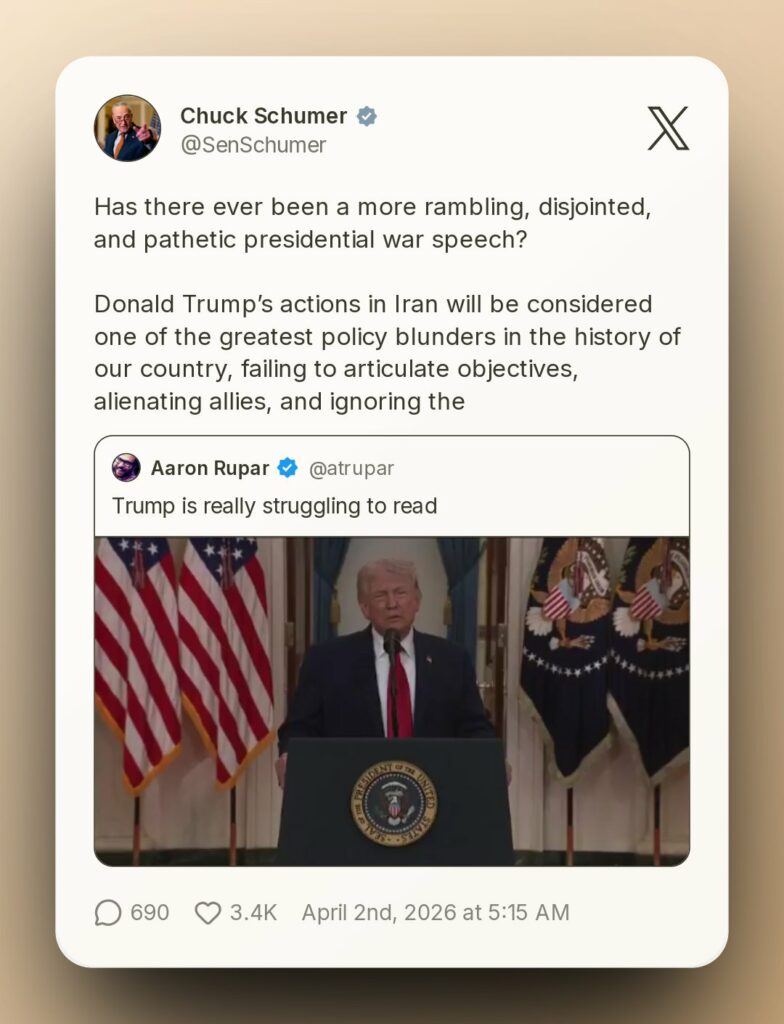 He described it as “rambling, unmoored, and unserious,” warning that the former president appears to be overwhelmed by the complexity of the situation.