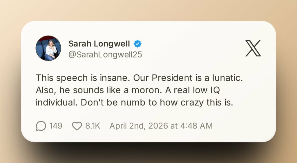 Political strategist Sarah Longwell delivered one of the harshest reactions, labeling the speech as “insane” and expressing deep concern over Trump’s judgment.